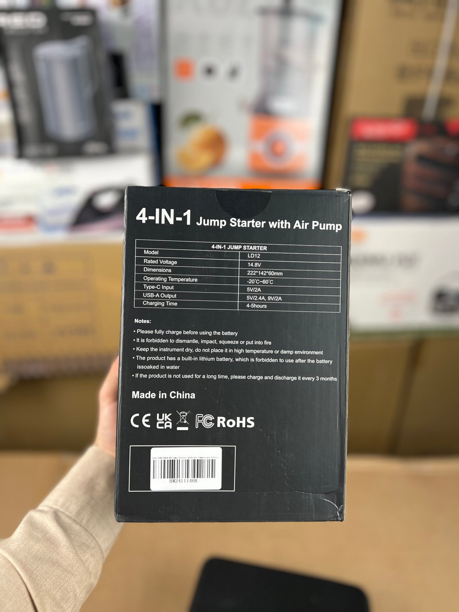 Car Jump Starter With Air Compressor, 1800A – LD12