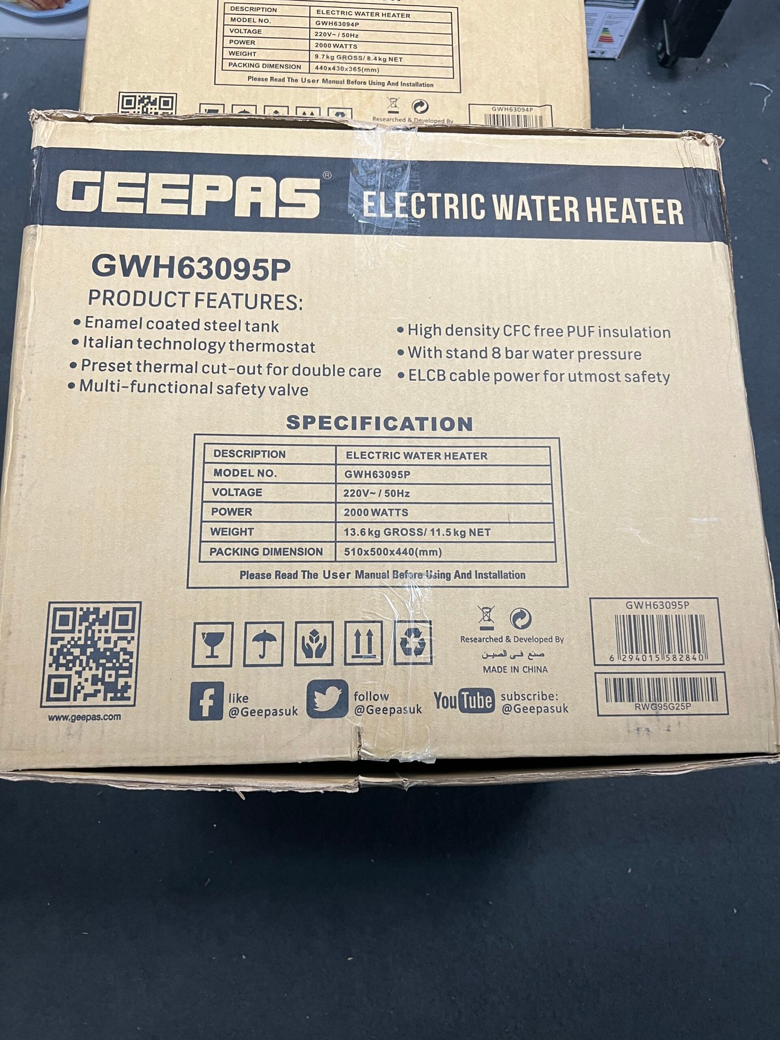Geepas Electric Water Heater Available in 15L & 30L – 2000 Watt