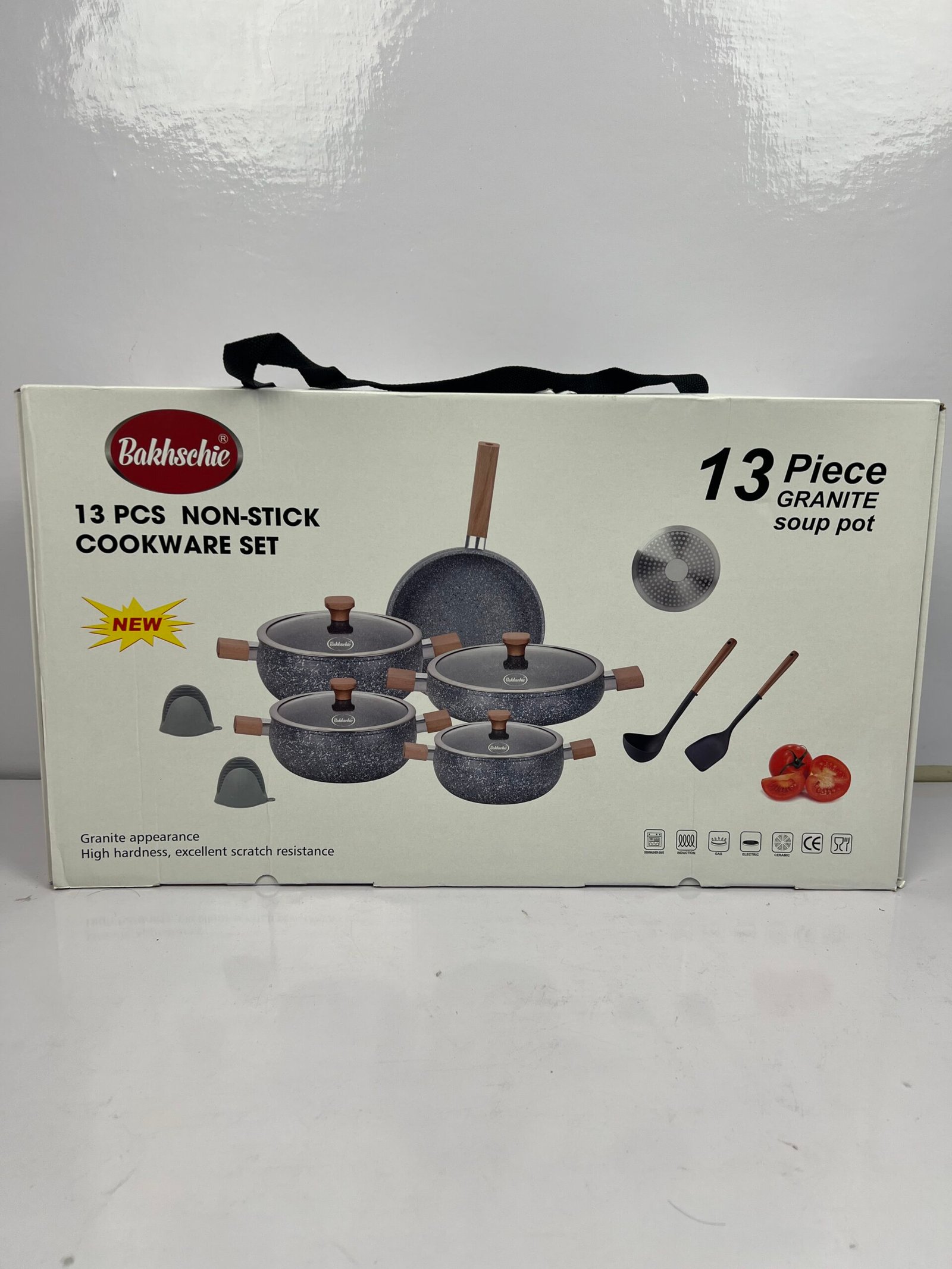 The German Lot Bakhshie 13 Piece Granite Cookware Set offers a durable and versatile solution for your kitchen. Made with high-quality granite, it ensures even heat distribution for consistent cooking results. The set includes various casseroles and pans in multiple sizes to cover all your cooking requirements.