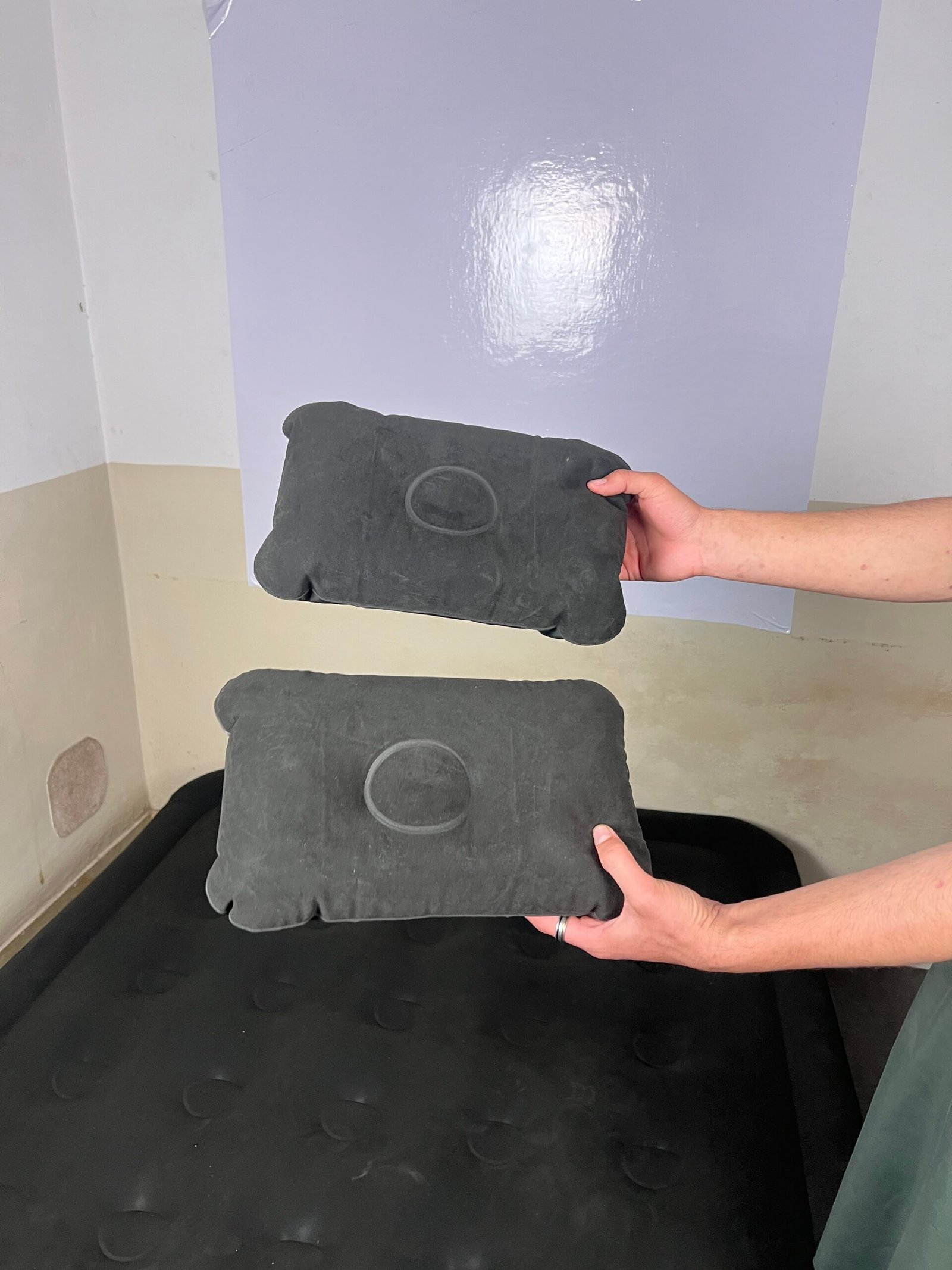 Inflatable Single Bed - Black Color With Two Pillows