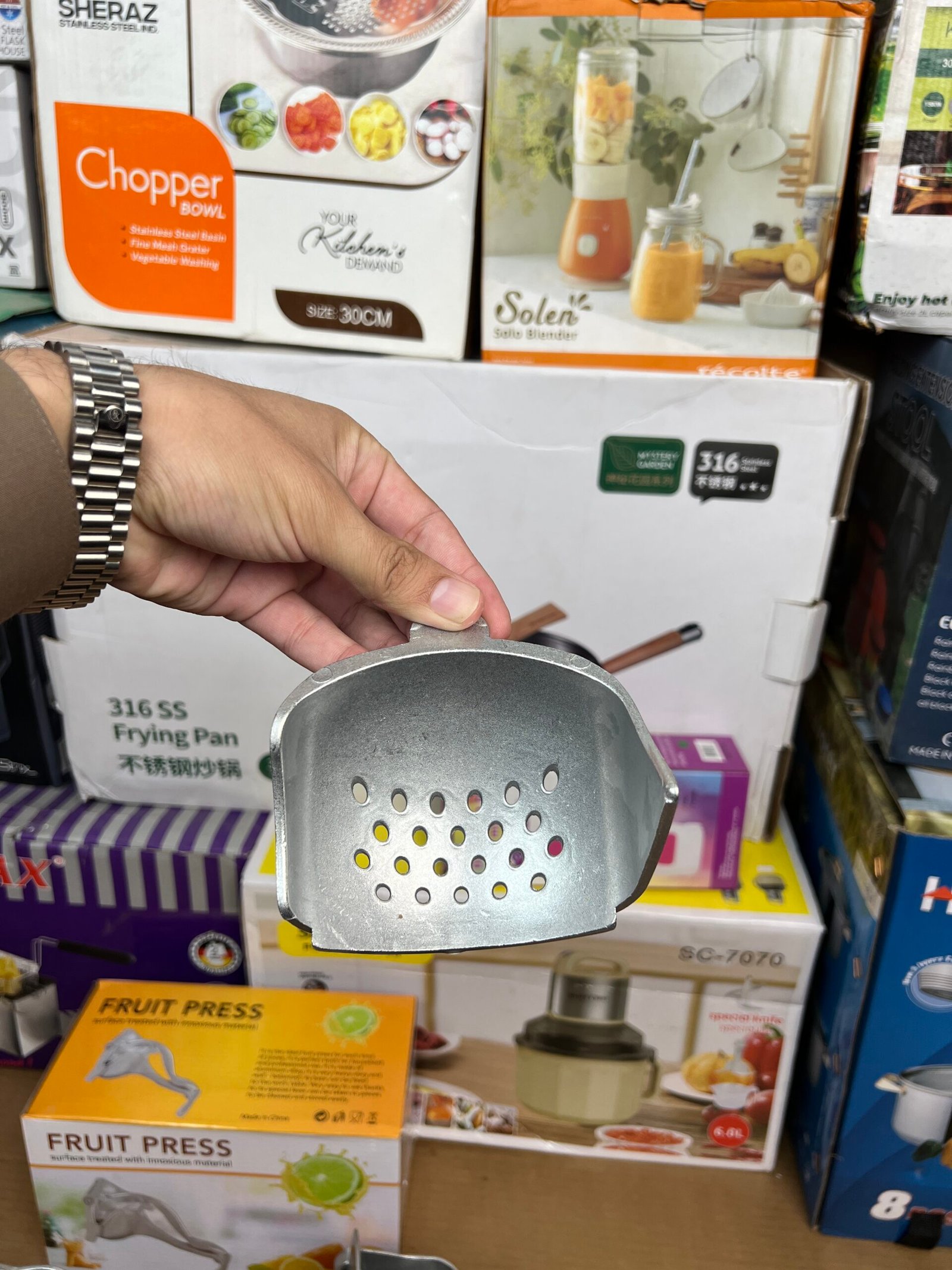 This <strong>manual hand press juicer squeezer</strong> is an efficient and durable kitchen tool designed for extracting juice from soft-skinned fruits like oranges and pomegranates. Utilizing the leverage principle, it saves both time and energy while providing effective juice extraction. The juicer is crafted from silver-colored, rust-resistant material, featuring a smooth liner with fine holes for easy residue separation. Its ergonomic, one-piece design ensures ease of use and comfort during operation, making it an ideal choice for household juicing needs.