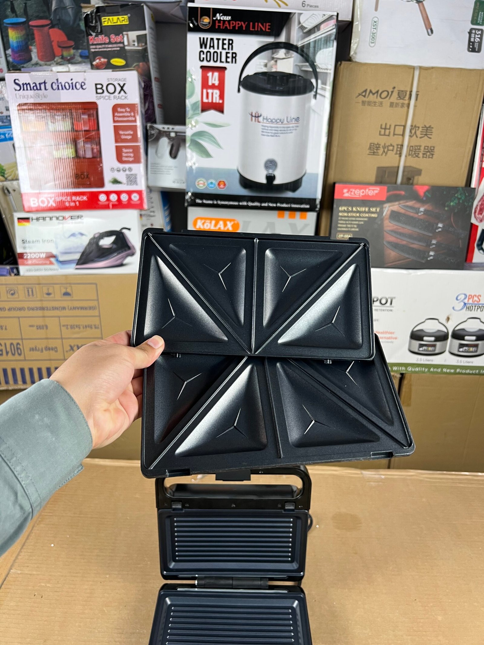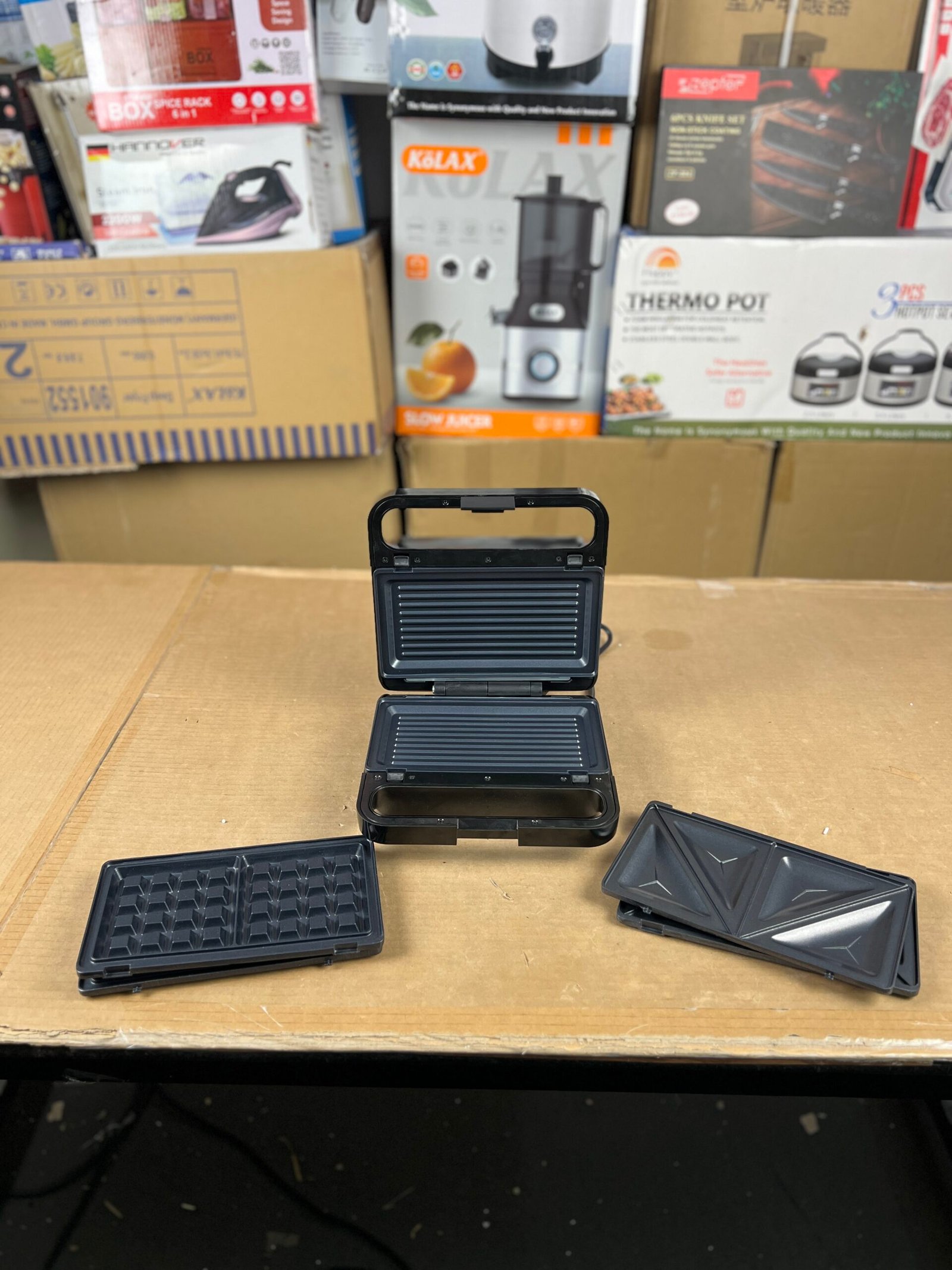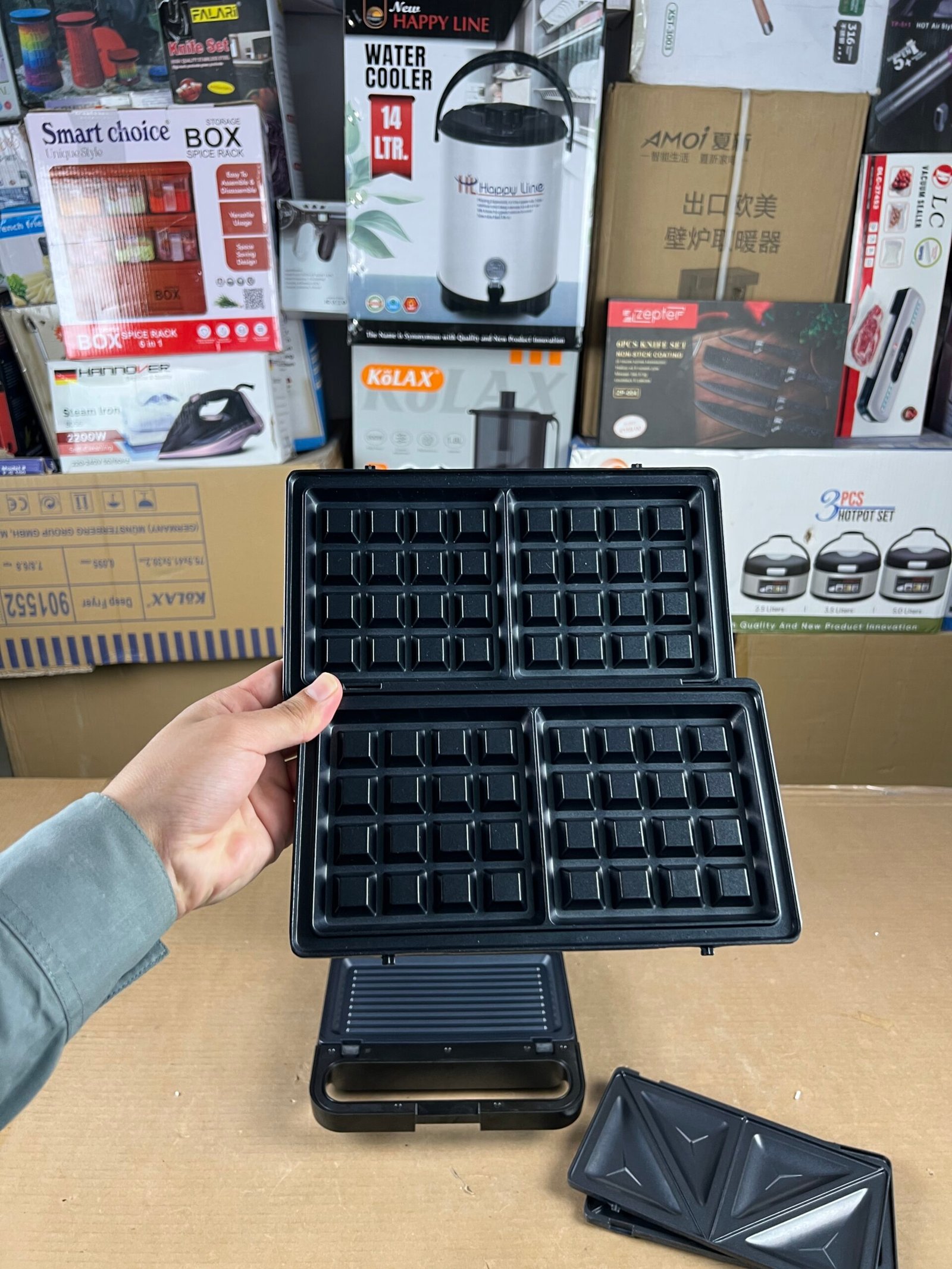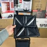 - Three Interchangeable Plate Sets: Includes specific plates for triangular sandwiches, Belgian waffles, and a flat grill for Paninis or meat.